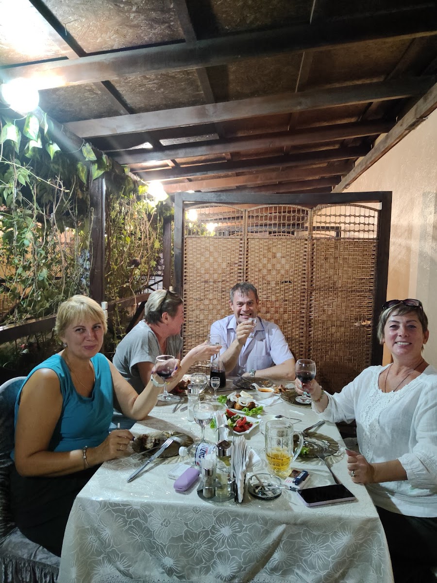 Add some extra flair to your evening with a refreshing glass of homemade Georgian wine or a unique compote, making sure to wash down all the delicious flavors you've savored. Although the music selection might not always create the perfect dance vibe, the courteous service and delicious food more than make up for it.
