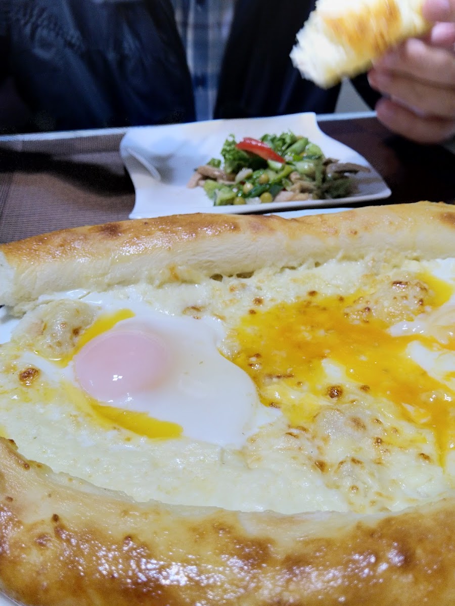 The menu at Kafe Biik Bastau Genatsvalle showcases a variety of delectable Georgian dishes that are a feast for the palate. Don’t miss the renowned Adjarian Khachapuri, a warm boat-shaped bread filled with gooey cheese and topped with a sunny-side-up egg that oozes comfort and richness with each bite. Guests have praised the succulent shashlik and flavorsome chashushuli, both of which promise to transport you straight to the heart of Georgia with their vibrant spices and tender meats.